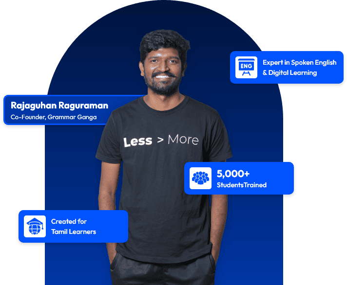 Hi, I’m Rajaguhan, co-founder of Grammar Ganga, a leading spoken English platform that helps Tamil-speaking learners master the skill of fluent English communication.